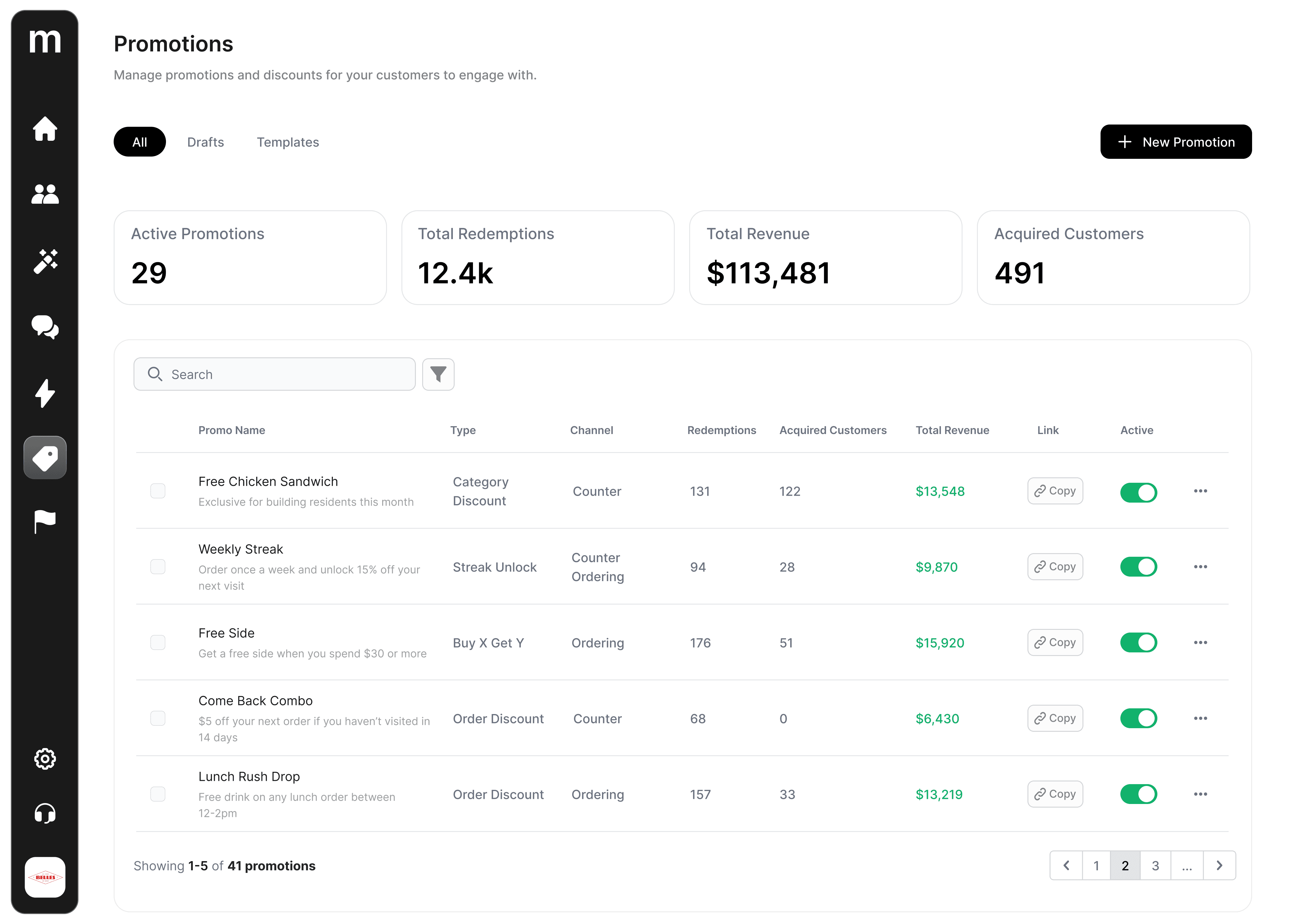 Choose from flexible types like order discounts, Buy X Get Y, streaks, and unlocks
